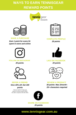 Here at TennisGear we have created our loyalty program with exciting and exclusive rewards to say 'thank you' to our amazing customers.